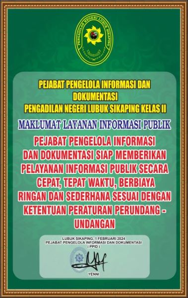 Ketua Mahkamah Agung RI pada tanggal 5 Januari 2011 telah menerbitkan Surat Keputusan Ketua Mahkamah Agung RI Nomor 1-144/KMA/SK/I/2011 tentang Pedoman Pelayanan Informasi di Pengadilan