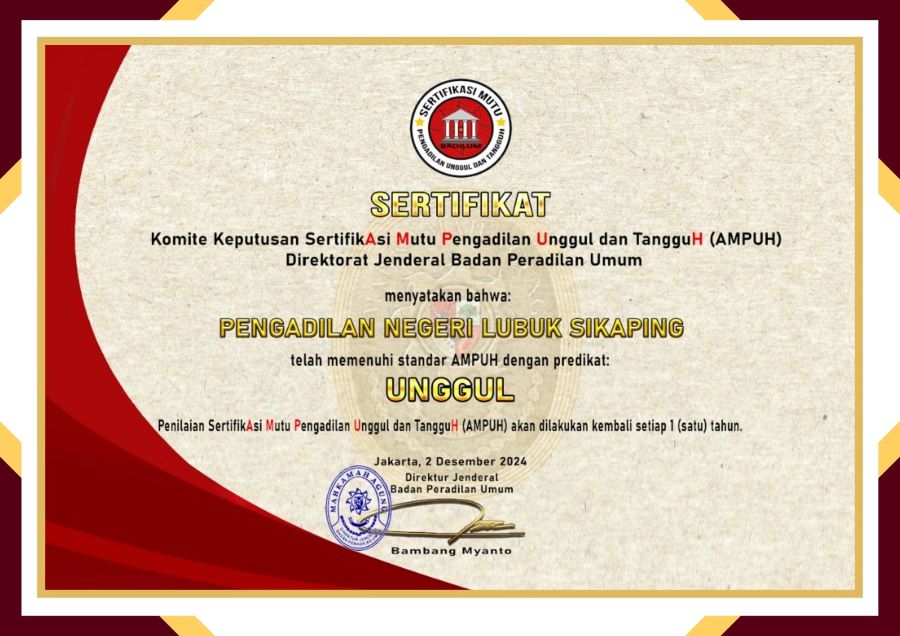 Pengadilan Negeri Lubuk Sikaping telah melakukan kerjasama dengan Dinas Sosial Kabupaten Pasaman ter...