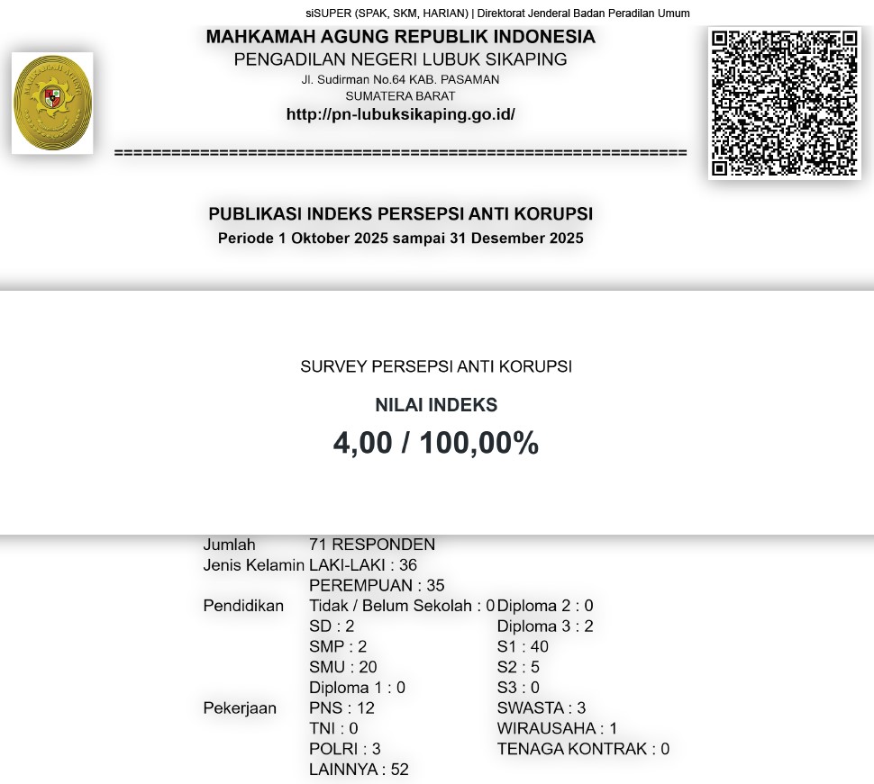 Nilai Indeks Persepsi Anti Korupsi (IPAK) = 4,00 / 100%